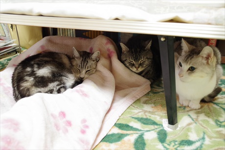 夕ごはんの後は3人そろってホットカーペットでまったり^O^